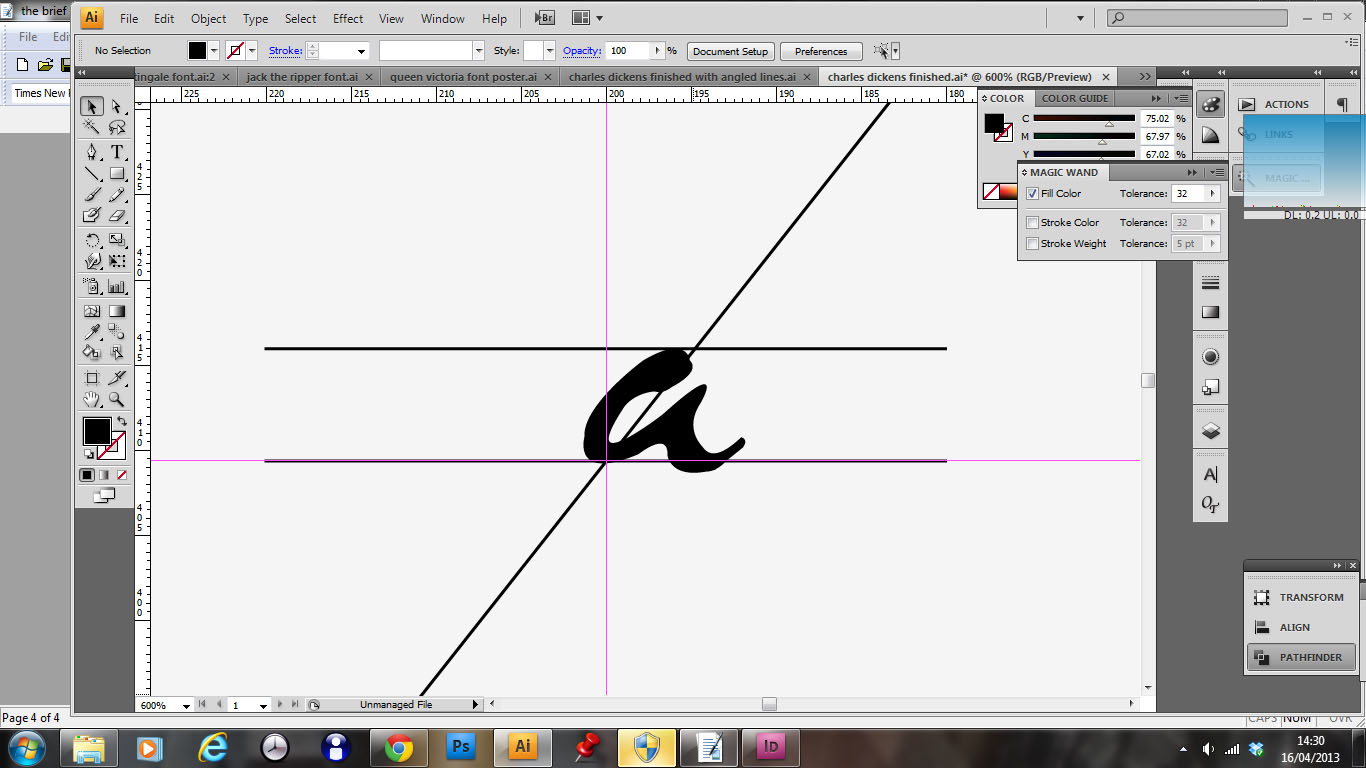 I am now editing the boards for each of the writers before I lay them out in illustrator to see how they work as a set. Im altering the leading of each line so that I have a constant kerning of 30 points for the gap between the title and the bulk of information (paragraph spacing) and a 17 point leading for the main areas of text. I am also changing all of the titles of the information pieces because I was describing them as ‘rounded lower loops’ or ‘small lower zone’. This actually isn't that interesting information, what the viewer really wants to see is what characteristic or trait that shows that the person has. Therefore I am changing all of these titles for a description of character. I am also making sure that all of my information lines are aligned with the centre of text areas, and that there is a constant thickness of gap between these lines and the text areas.